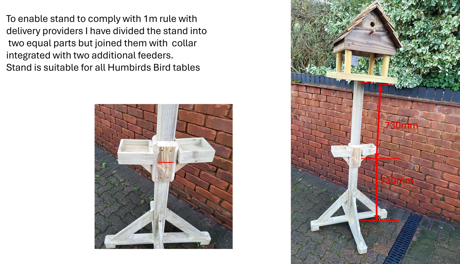 This stand is universal to all bird tables and has adjustable feet height for tables placed on hard standing like block paving which may be slightly uneven.